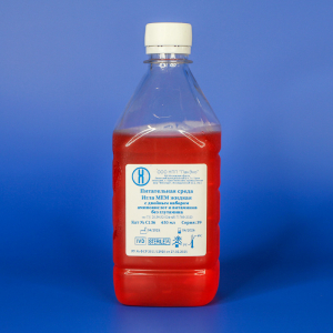 Minimal Essential Medium (MEM) with Hank's salts, glutamine-free, with a double set of vitamins and amino acids is a mixture of inorganic salts, amino acids, vitamins, glucose and phenolic red dissolved in purified water, sterilized through filters with pore size of 0.1 microns.