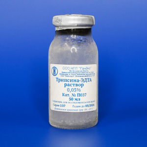 Представляет собой раствор трипсина (0,05%), ЭДТА (0,53 мМоль) и неорганических солей в очищенной воде, простерилизованный через фильтры с размером пор 0,1 мкм. Не содержит соли кальция и магния.