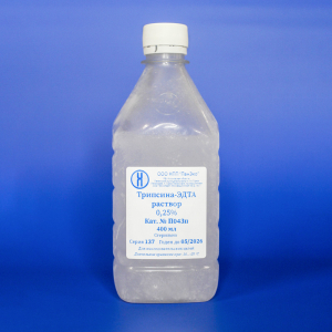 Представляет собой раствор трипсина (0,25%), ЭДТА (0,53 мМоль) и неорганических солей в очищенной воде, простерилизованный через фильтры с размером пор 0,1 мкм. Не содержит соли кальция и магния.
