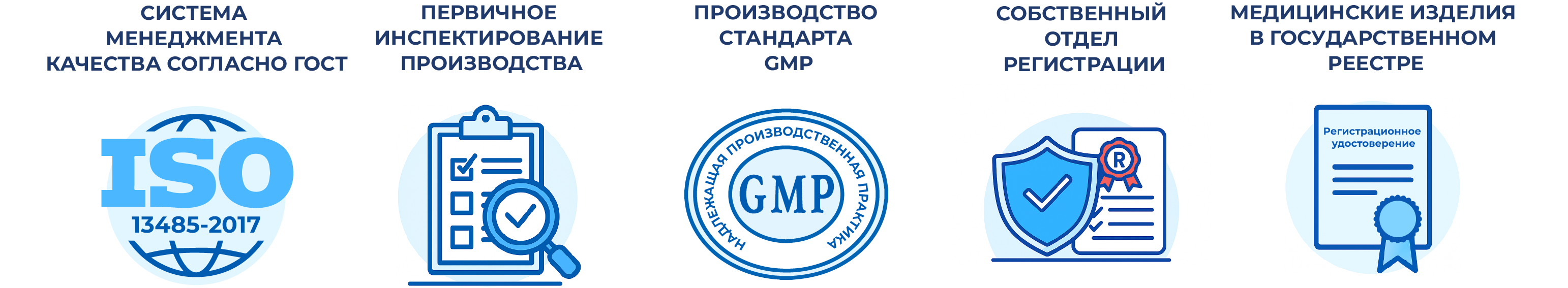 На предприятии внедрена и сертифицирована система менеджмента качества согласно ГОСТ ISO 13485-2017. Первичное инспектирование производства, которое было проведено в 2024 г. ФГБУ «ВНИИИМТ» Росздравнадзора, установило соответствие системы управления качеством медицинских изделий требованиям к ее внедрению.