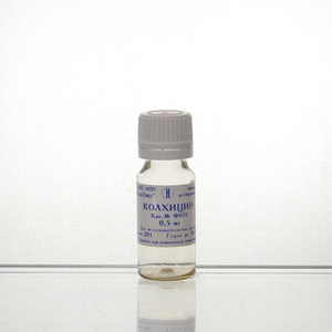 Условия хранения: Хранить при комнатной температуре. При длительном хранении концентрат раствора колхицина рекомендуется замораживать.