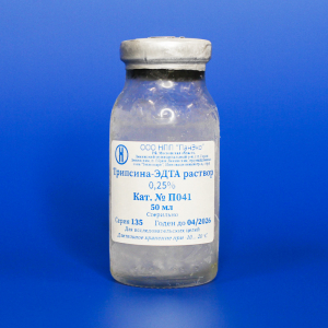 Представляет собой раствор трипсина (0,25%), ЭДТА (0,53 мМоль) и неорганических солей в очищенной воде, простерилизованный через фильтры с размером пор 0,1 мкм. Не содержит соли кальция и магния.