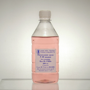 Способ применения: Перед применением при необходимости во флакон со средой (450 мл) добавить 146 мг сухого стерильного L-глутамина (кат. № Ф032) и дополнительно обогатить среду компонентами, специфичными для условий конкретного анализа. Для проведения стерильных работ вскрытие флакона проводить в асептических условиях.